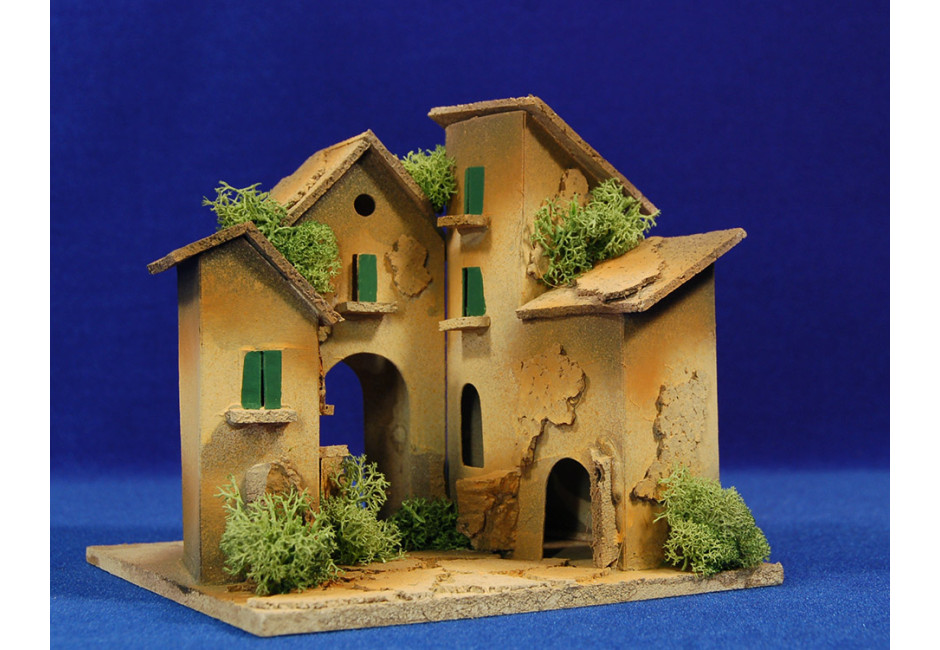 Pueblo 3 casas M4 14 cm cartón-corcho