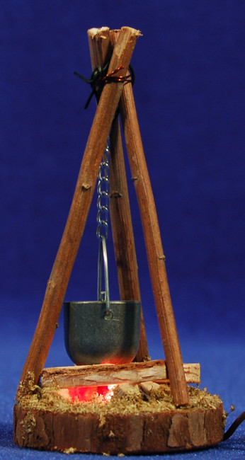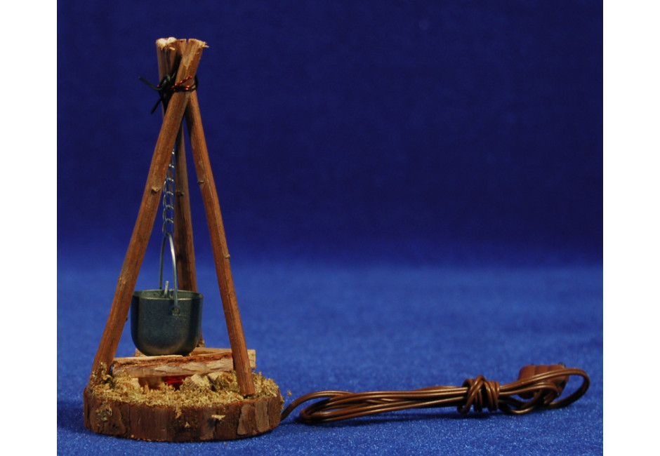 Fogata de 9x5 cm de madera, con luz (4,5 V DC). Para la anunciata del belén.