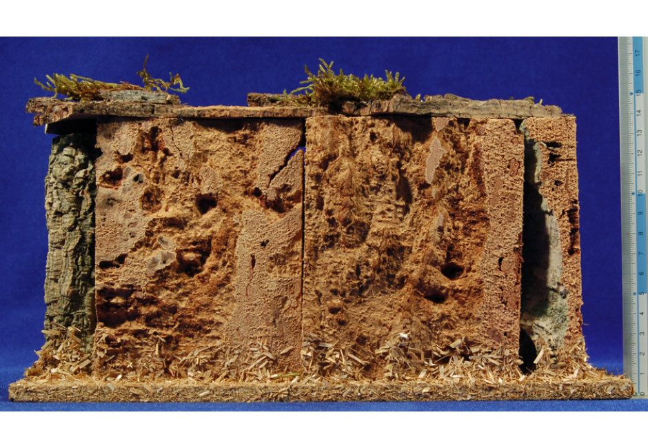 Portal artesanal, hecha en serie. Con raices laterales y un pajar donde se puede poner gallinas o qualquier otro animal. Para figuras de 8 cm. El complemento que no puede faltar en el belén.