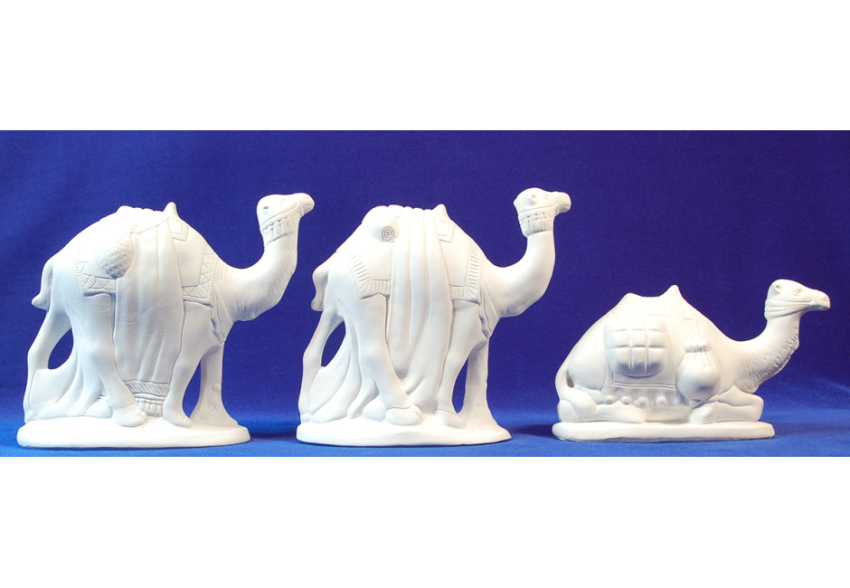 Conjunto 3 camellos sin pintar 16 cm yeso