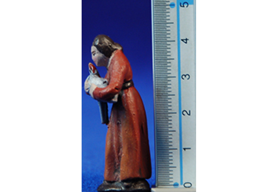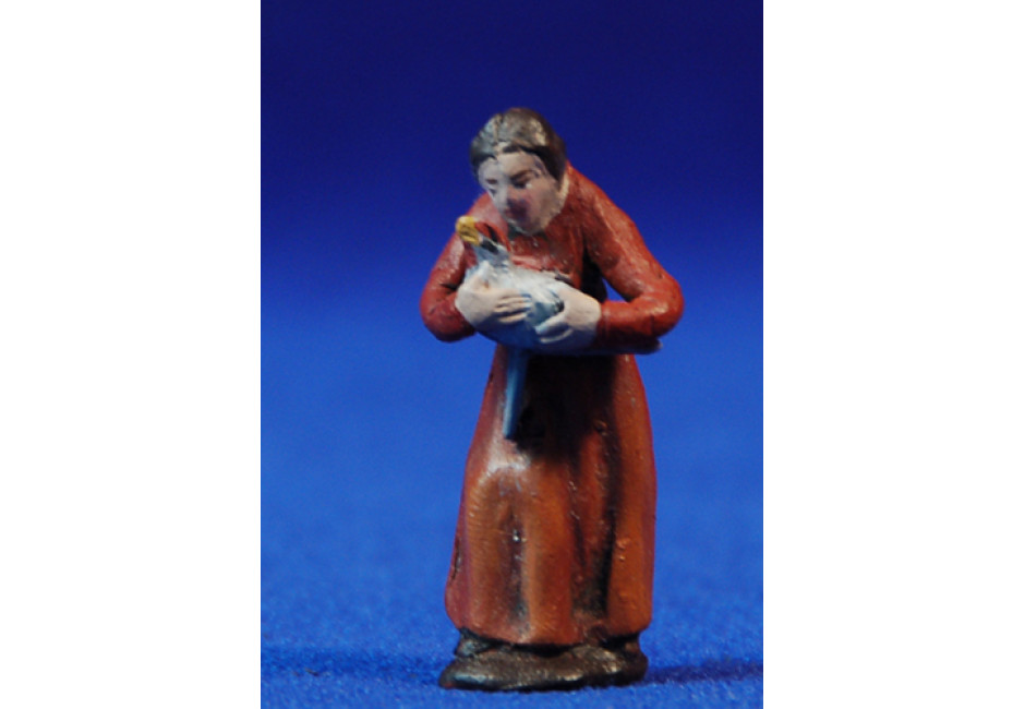 Pastora con gallina 5 cm barro pintado Figuralia