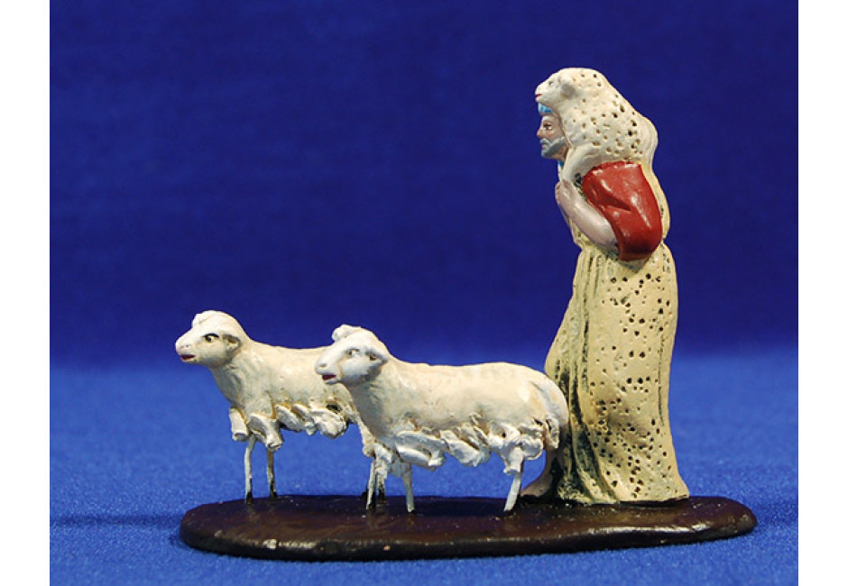 Pastor anciano con cordero 7 cm barro pintado Figuralia