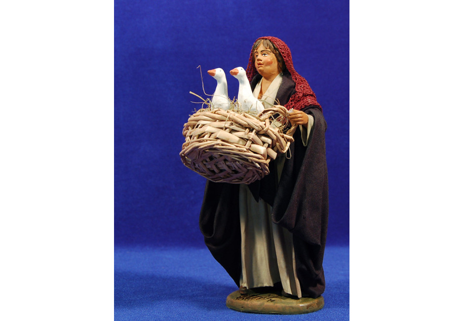 Pastora con cestos con ocas 20 cm ropa y barro