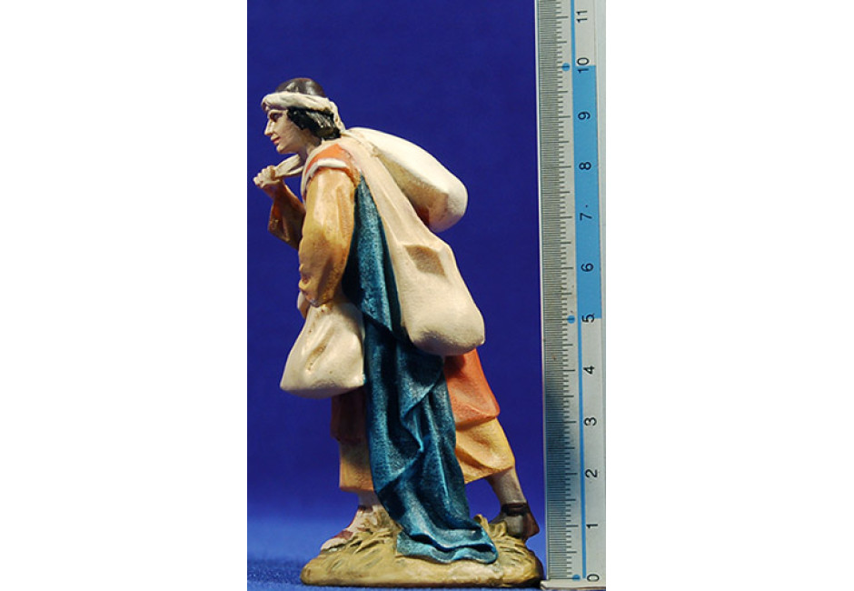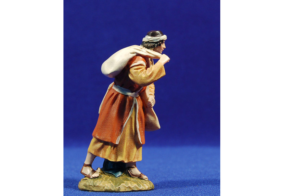 Figura de belén formada por un pastor que lleva un saco de harina en la espalda.
