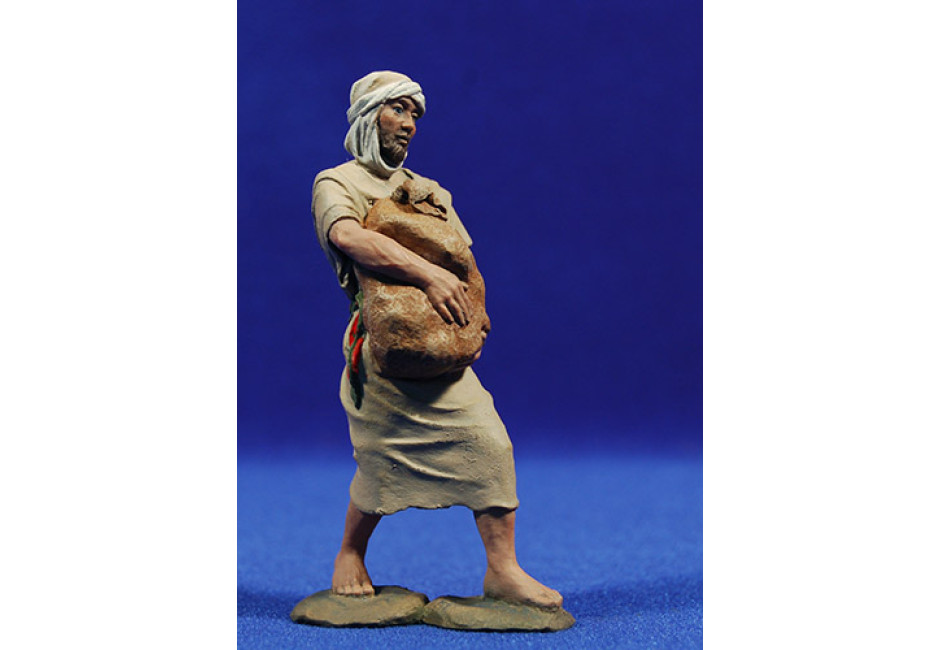 Figura de un pastor cogiendo un saco. Para poder acompañar a un camello.
