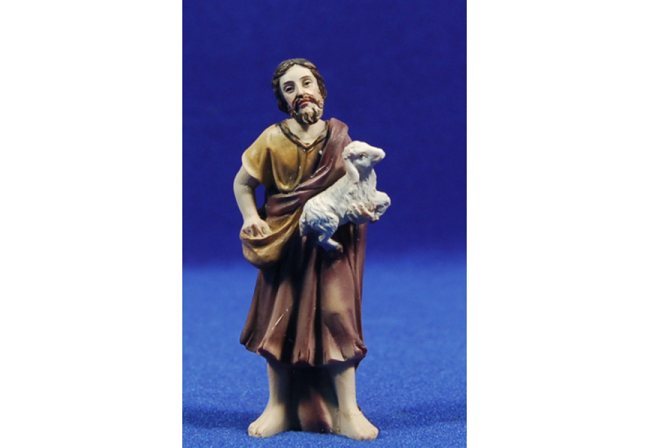 Pastor con cordero en brazos y bolsa 8 cm resina Belenes Puig