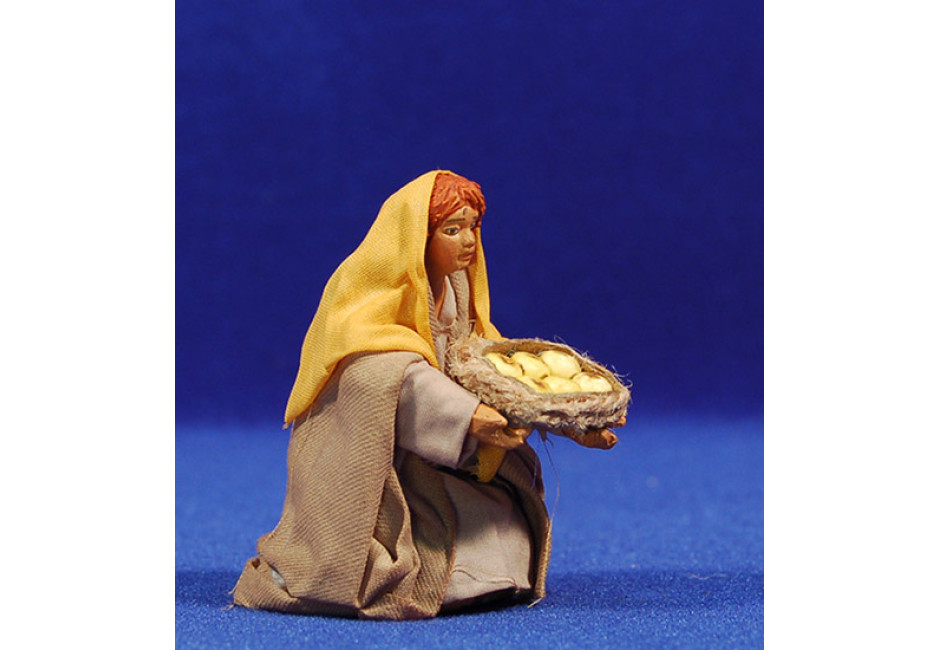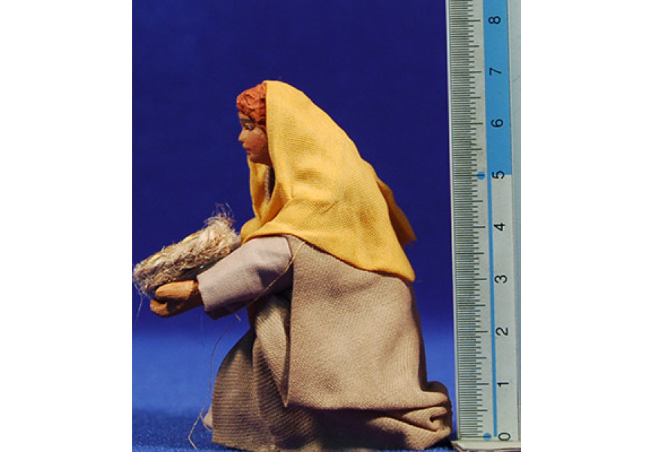 Pastora adorando con cesto fruta 10 cm ropa y barro