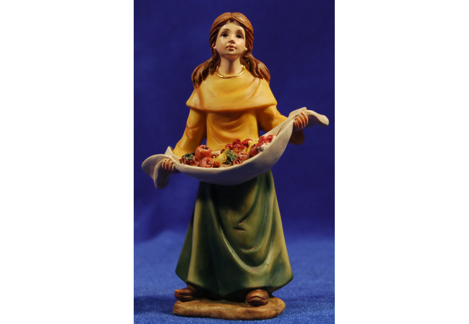 Pastora con canasta frutas 15 cm resina